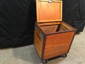 Size: 22" x 29" x 30" h, including 2 locking 3.5" casters. Caster dishes on the lid for stacking.