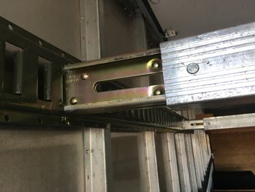 Bottom panel on roll up door replaced recently. The other panels need paint.
